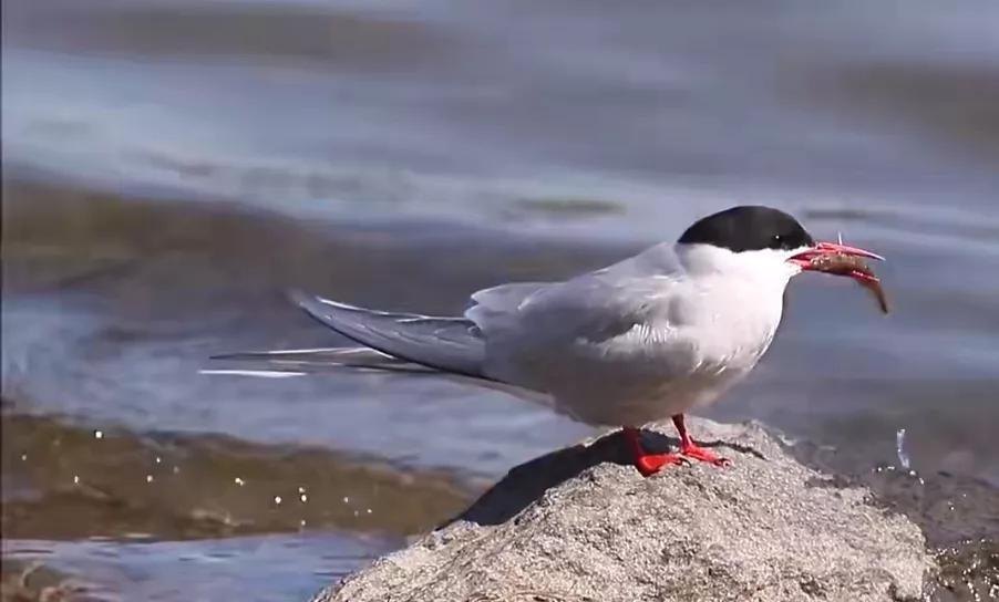 北极燕鸥主要桠息于沼泽和海岸等地带,以小鱼、虾、甲壳类昆虫等小型动物为食。常在水面上空持久而频繁飞行,一旦发现猎物就急速扎水中捕食。