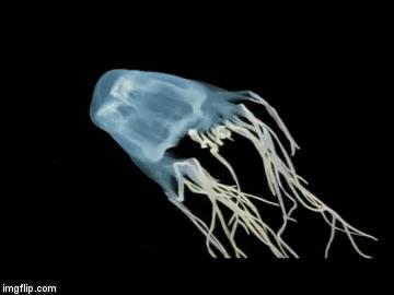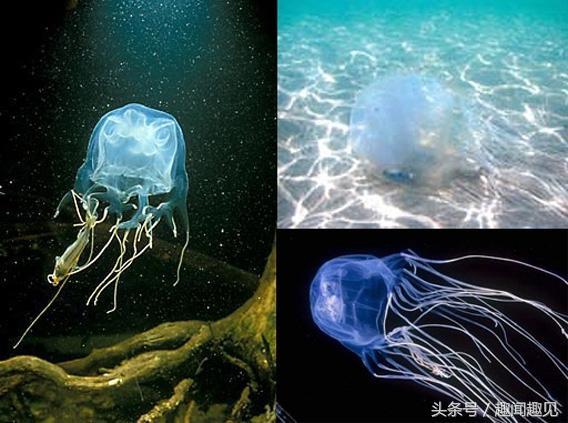 下面的这种生物“澳大利亚箱形水母”,又称为“钟型水母”,俗称“海黄蜂”,是一种致命的毒水母,生活在澳大利亚和新几内亚北部、菲律宾和越南。它们造成了在世界上无数对人体的伤害或死亡事件,被认为是地球上最致命的水母。