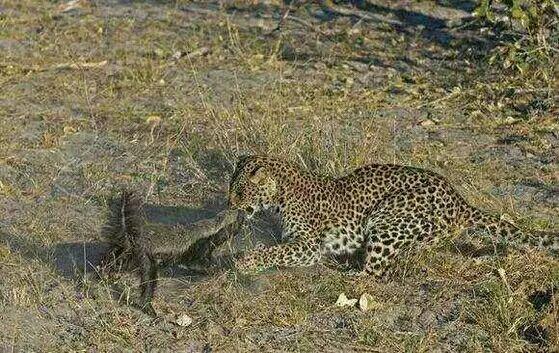 2、蜜罐跟花斑豹撕扯很久,竟然不落下风,最后大摇大摆离开。