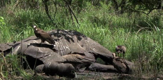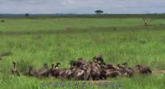 在众多的秃鹫中,白头鹫显得尤为突出。白头鹫品味有些粗俗,它们喜食硬而坚韧的部位。它们强劲有力的喙能啄开肌腱和兽皮。而且,厚厚的兽皮正是它们的主要食物。仍有秃鹫源源不断地前来参加盛宴。