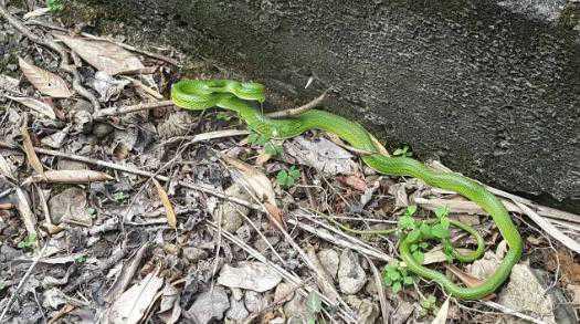 绿瘦蛇也是一种颜值相当高的蛇类,属于有轻微毒素的蛇,这种蛇的体型细长,全长也就在一米左右。背面鲜绿色覆面淡绿色,喜欢在树上捕猎。