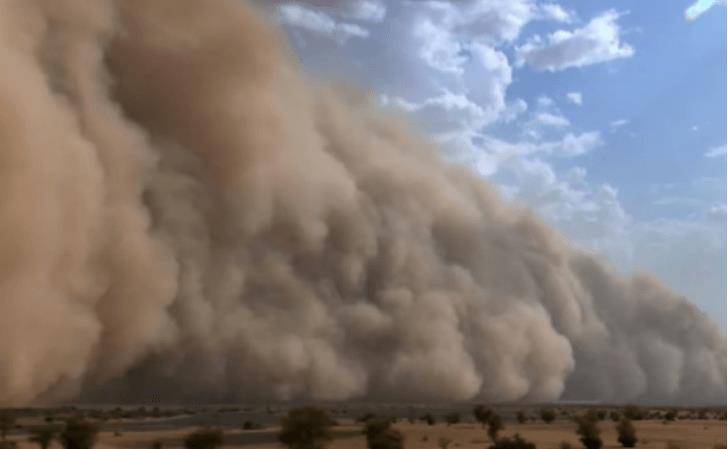 沙尘暴是荒漠化的标志,指强风从地面卷起大量沙尘,能见度水平很低,曾经在1934年美国西部草原发生了一场前所未有的黑色风暴,风暴所过之处,溪水断流、水井干枯、田地龟裂,造成了很多人流离失所。