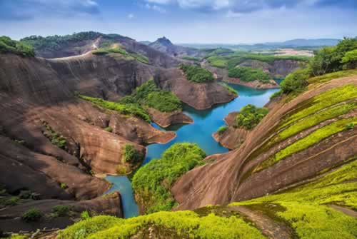是由飞天山、便江和程江渌水等组成的丹霞地貌奇观。其最大的特点就是丹霞地貌周边有漂亮的水洼点缀,美丽又壮观。