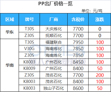 PC各地市场高位运行延续,部分报盘向上,市场低价难寻,实单交投高位谨慎。零星工厂价格上调,涨幅200元/吨。上游产业链延续上涨态势,PC成本重心向上。