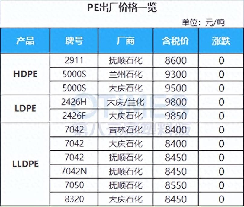 国内聚乙烯现货价格呈部分上涨趋势,石化出厂价部分上调为主,企业出厂价上调为主,贸易商报盘走高,下游积极采购,实盘商谈为主。