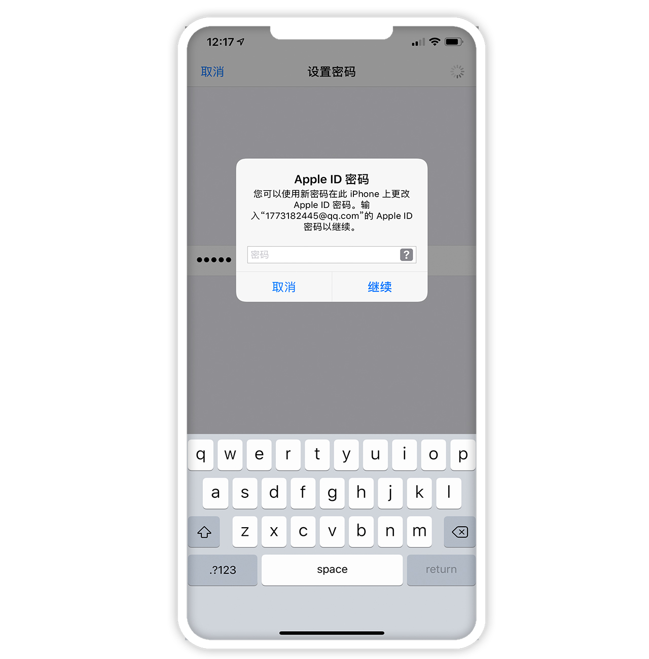 在设置锁屏密码的时候,iPhone 会要求你输入一次Apple ID 密码,并且告诉你可以使用设置的锁屏密码来更改你的Apple ID 密码。