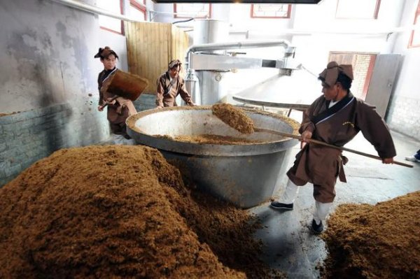 清香型白酒,如:汾酒都是以大曲低温酿造,出酒率大概在50%左右,但是像部分小企业生产的老白干往往会采用麸曲酿造,或是大曲+麸曲、麸曲+液态法的模式,这样酿造的出酒率远高于50%,但是同样会损失一定的风味成分。