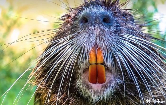 河狸最厉害的武器就是它那两对门牙,因带有铁离子异常的坚硬和锋利,而且它牙齿不会停止生长,就算被磨损也会长出新的来,它们平时没事也会磨牙,毕竟“磨牙不误砍柴工”,这就是为何有些大树会伐而不倒的原因。