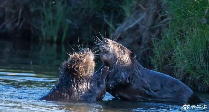 河狸不慌不忙游到领地占有者的面前,研究员以为它们要来一场激烈的战斗,画面中它们表现地有些冷静,河狸绕着对方游了两圈,对方并没有强烈驱赶,似乎还有些惺惺相惜,接下了一些互动行为确定这俩河狸是一公一母。
