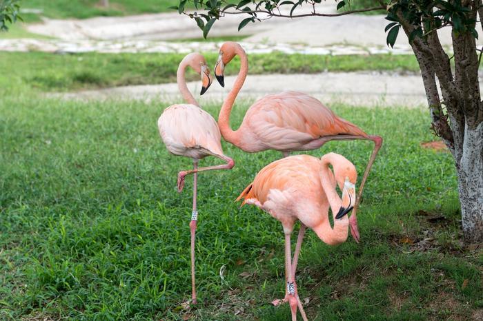 火烈鸟绝对是这里的明星动物,基本上来这里的人大多都是冲着这群可爱的火烈鸟而来。火烈鸟属于鸟纲动物,一般栖息在温热带盐湖水滨的浅滩,它的嘴巴短而厚、颈长而曲、脚极长且裸出,羽毛颜色非常艳丽漂亮,好似一团火般,也许这就是名字的由来吧。