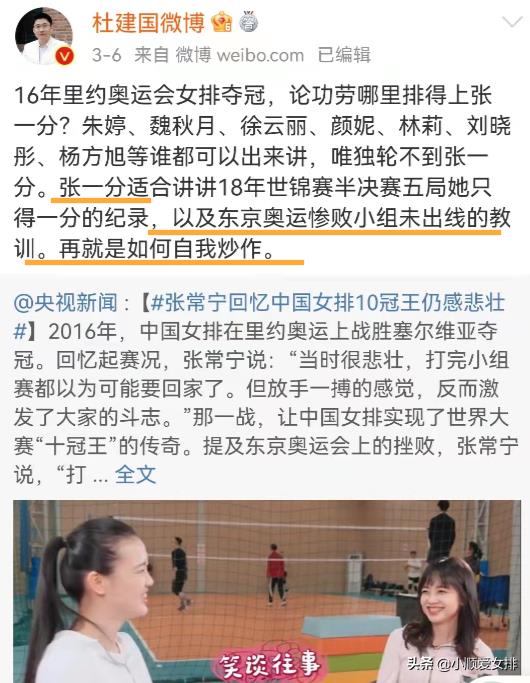 中国女排之所以能够取得一系列的辉煌成绩,离不开冠军球员和功勋教练员们的付出和牺牲,也离不开对中国女排一直不离不弃的球迷们。但或许关心则乱,近日一位可以说是中国女排铁杆球迷的著名学者,继去年东京奥运会前实名举报张常宁之后,再次炮轰张常宁,称其自我炒作。笔者口中的著名学者就是杜建国。