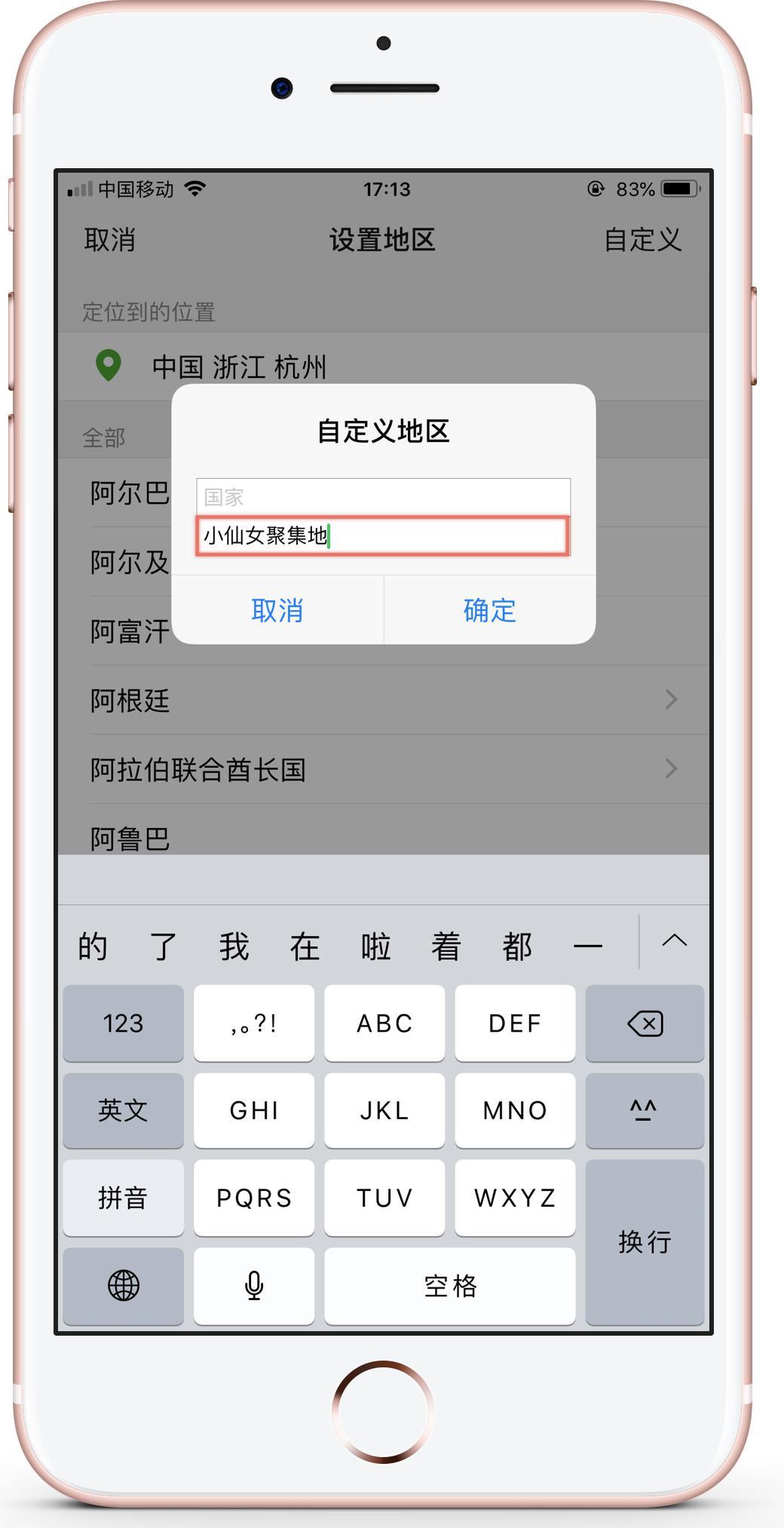 登录后,进入「个人中心」-「更多」-「地区」,点右上角的「自定义」任意输入想显示的名称,返回就修改成功了,然后马上退出账号,登回微信官方App。