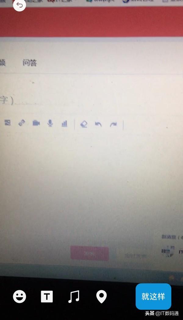 接下来进入视频录制过程,录制完之后,还可以输入文字,添加表情,还可以添加配乐等操作,操作完之后点击【就这样】即发送出去,如下图所示。