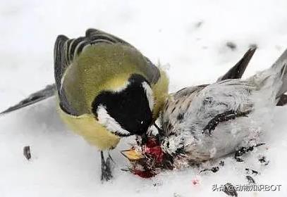 而大山雀则是用鸟喙直接凿开猎物的大脑头骨!然后像我们用吸管喝饮料一样来吸食猎物的脑髓,在吸食完毕后,大山雀便会开始慢慢享用最爱的美味“脑花”。场面简直血腥。