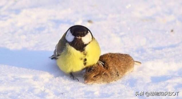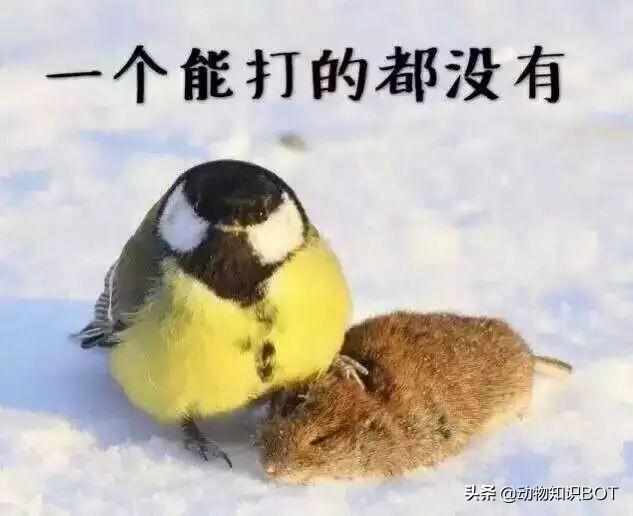 实际上,大山雀就如自身的造型一般,就是一种好斗的“社会鸟”。而它最好欺负的猎物之一就是鼠类,所以素有“虐鼠狂魔”的称号。凭借一张暴打老鼠的嚣张造型,使得大山雀火遍鸟界。