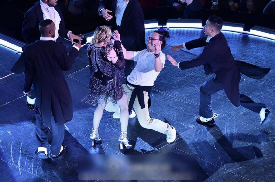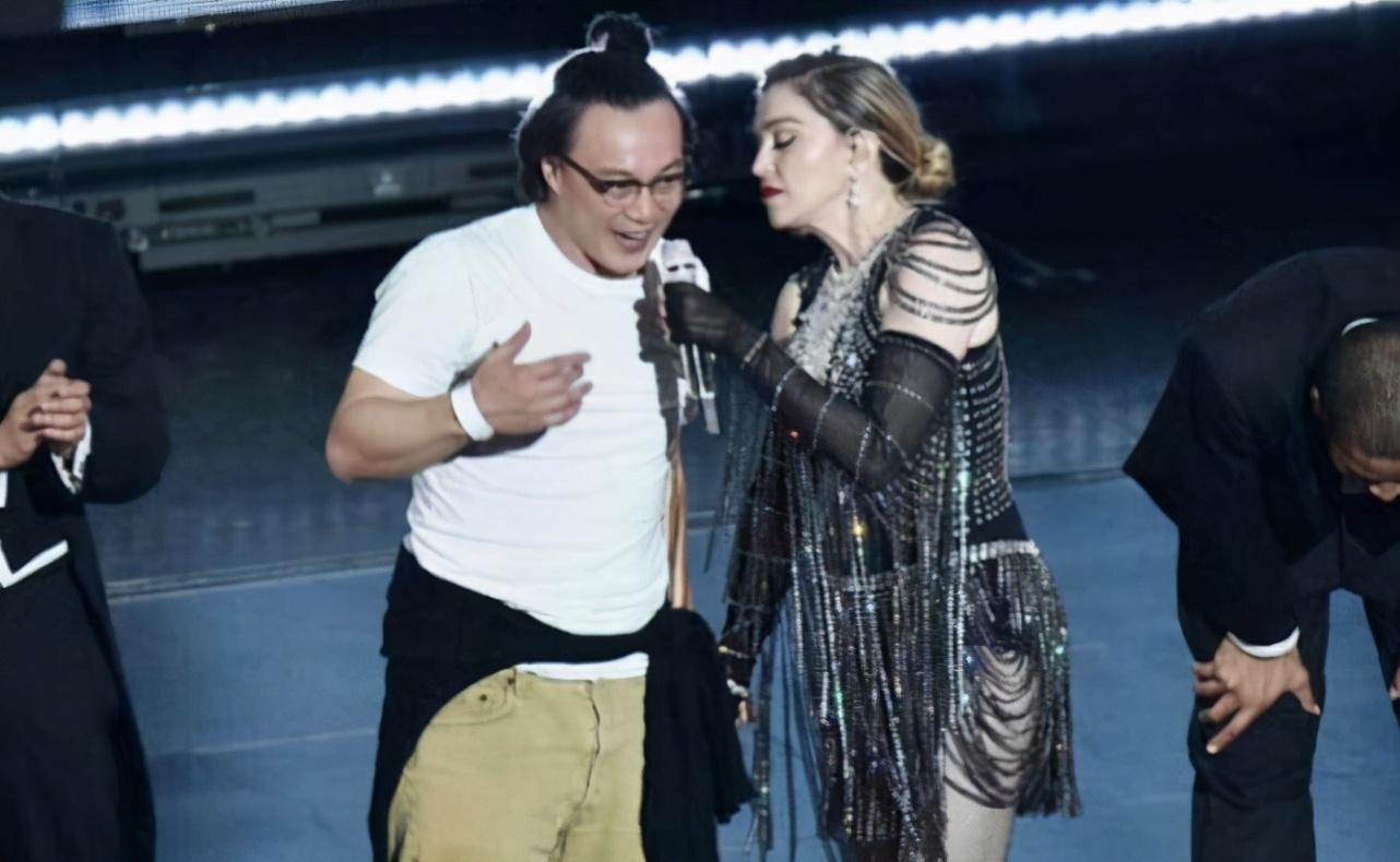 平日里陈奕迅性格搞怪,性格属于人来疯,虽然站在偶像的舞台上但是陈奕迅并没有一点紧张的意思,反而是解放天性和麦当娜亲密互动了一番,两人先是面对面跳舞,而觉得还不尽兴的陈奕迅随后又低头摆出鞠躬的姿势,随后麦当娜还用脚假装踢他臀部,画面十分大胆。
