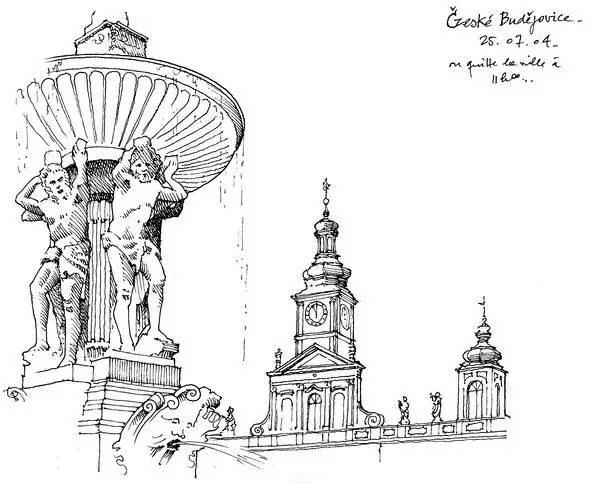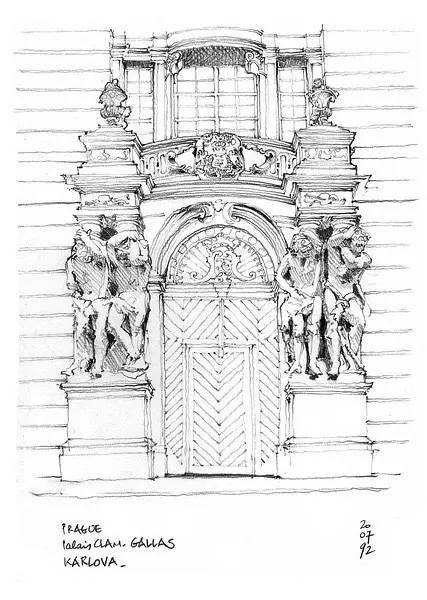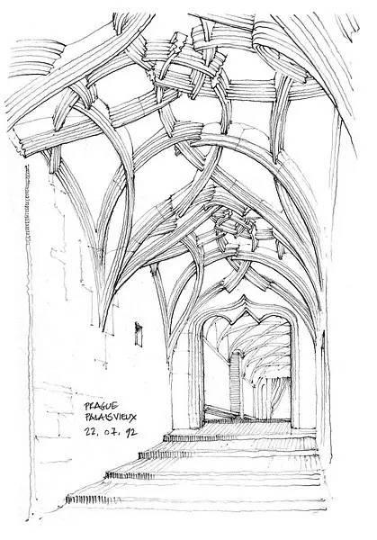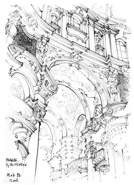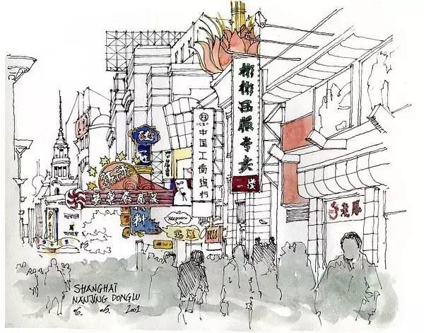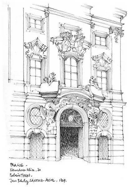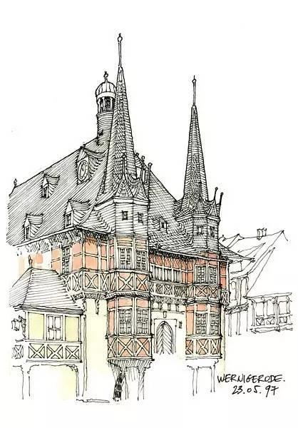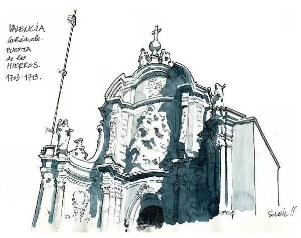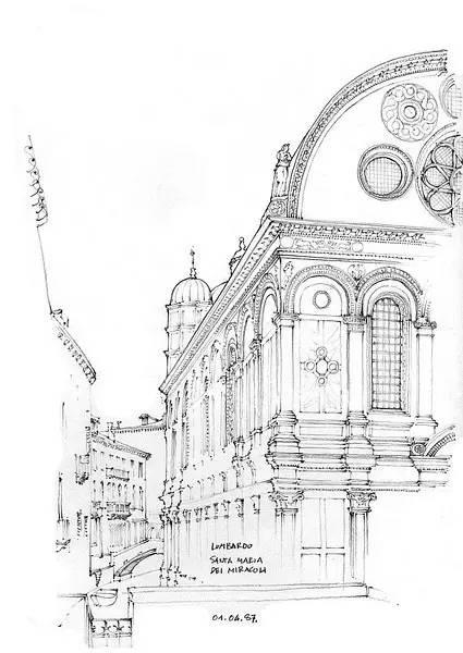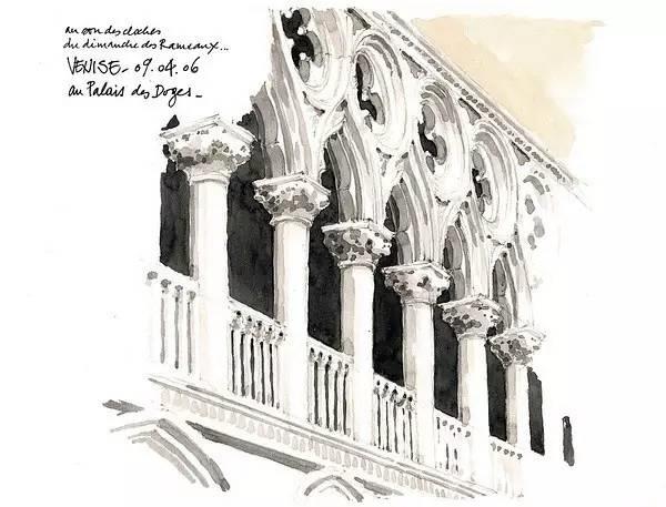 钢笔淡彩的绘画除了记录,还起着分析结构的作用。我们可以透过画面了解建筑的样式和特点。