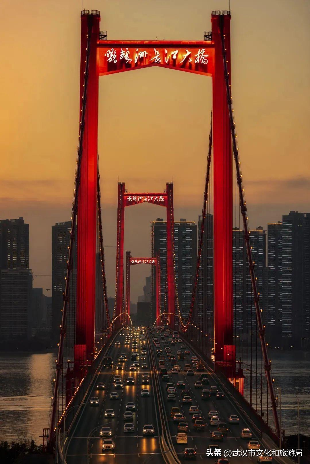 武汉鹦鹉洲长江大桥设计讲究中西合璧,且“汉味”十足。主缆曲线轮廓简洁、轻盈,富有韵律美,高耸的三塔寓意着武汉“三镇”鼎立。其橘红色与大洋彼岸美国旧金山的金门大桥一致,这种颜色被称为“国际橘”。桥面栏杆很好地融合了中国元素的屋顶造型,栏杆上安装了一块块中国风雕刻画板,有盘龙古韵、楚凤腾飞、高山流水、白云黄鹤等15种武汉元素,楚韵浓郁。