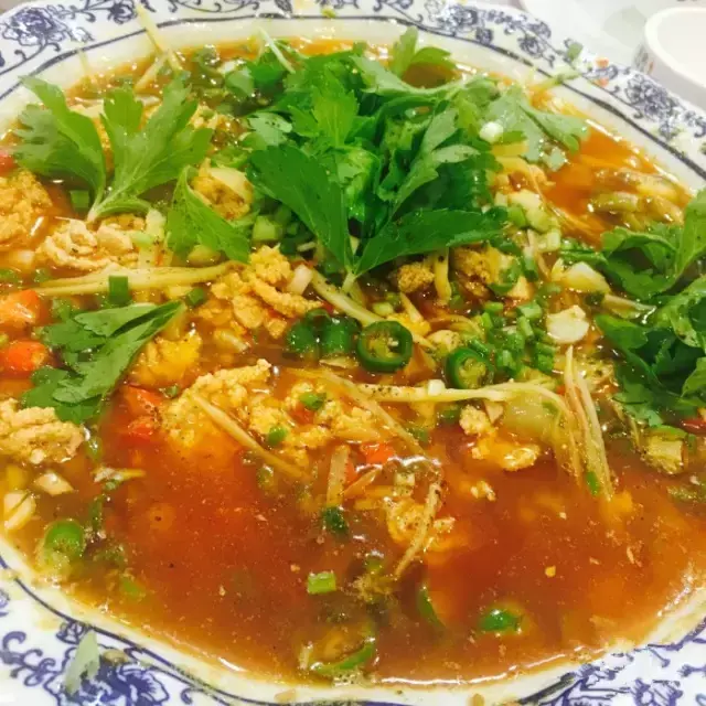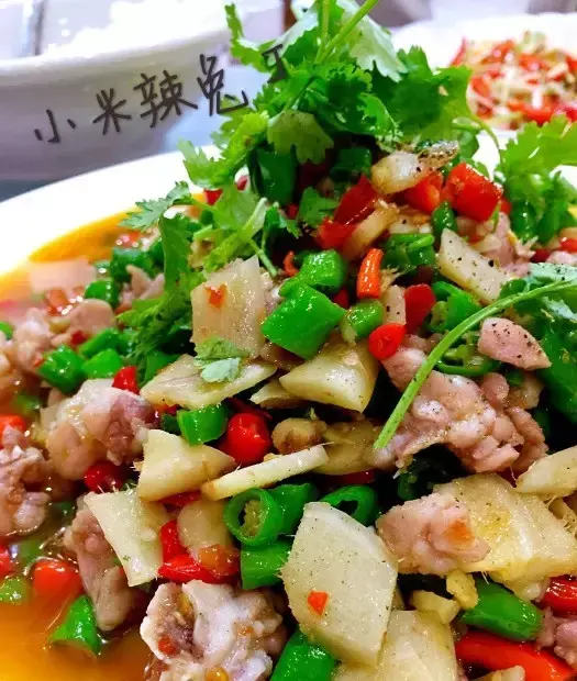 鱼蛋双脆花鲢鲜椒兔剔骨肉豌豆凉粉……辣的跳鲜到爆,鱼蛋大而不散,浓厚的生海椒味道都融到汤里~