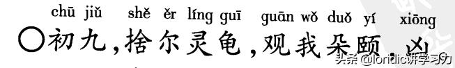 初九,舍弃你的灵龟,观察我吃东西的样子,凶。