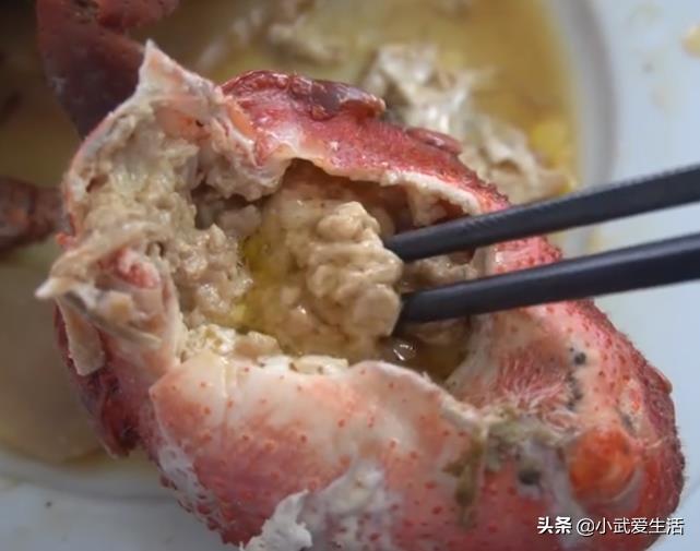 椰子蟹的尾巴里面装的都是蟹黄,看起来就很馋人。主播品尝了一口后发现直接吃会有点油腻,于是他把蟹肉蘸上蟹黄一起吃,味道真是太美妙了。看得小编都忍不住咽了咽口水,只可惜椰子蟹的价格实在是太高了。不知道大家有没品尝过椰子蟹呢?
