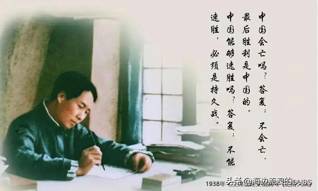 同年5月26日至6月3日,毛主席在陕北窑洞里写出了举世闻名的《论持久战》,指出中日双方互相矛盾的四个基本特点:①敌强我弱;②敌小我大;③敌退步我进步;④敌寡助我多助。