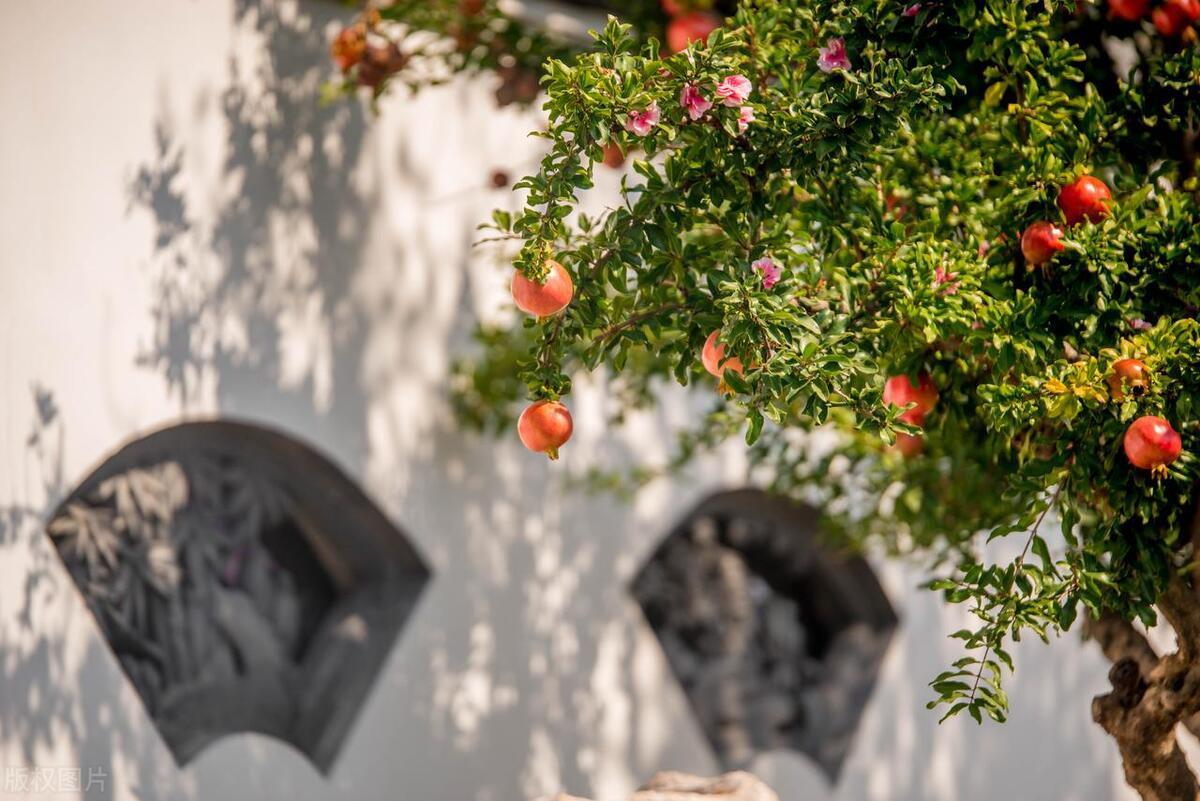 谁说诗人不如画家,寥寥四句诗中,我们已经“看”到了伍月石榴花正盛,石榴子小露枝桠间的景色。