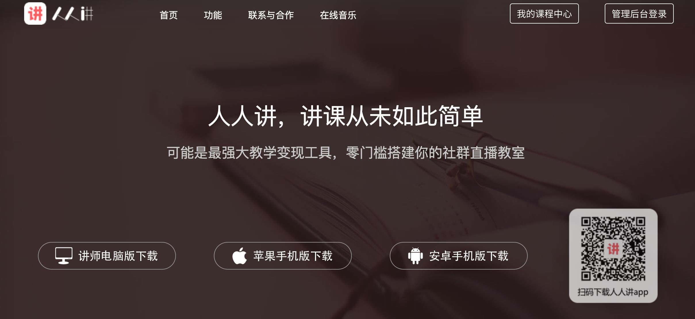 专注大众知识分享的平台,全平台所有基础功能终身免费使用。不用下载客户端,申请成为讲师后,在微信端开课,学生扫码或点击链接即可听课。