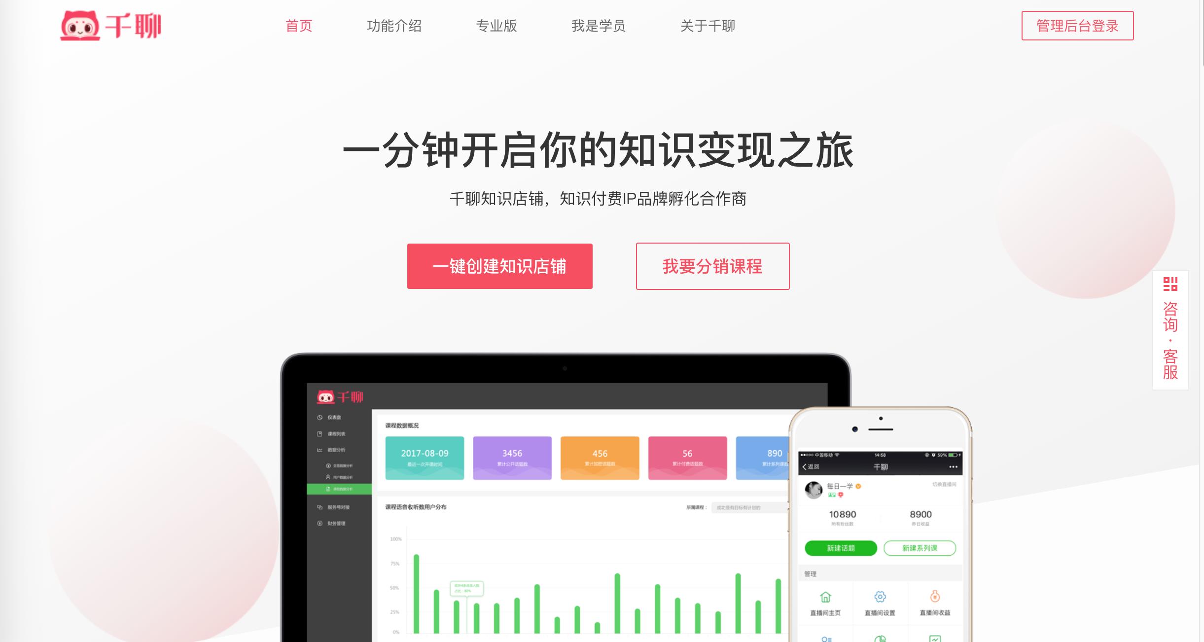 专注新教育的技术服务商。旗下多款产品,满足用户的各类需求:知识付费SaaS、新教育SaaS、企业内训、PaaS云服务、内容流量分发服务、商家学院、会务系统等。