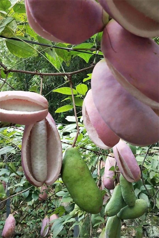 34、八月炸,又叫野木瓜、黄狗肾、牛腰子,果实呈紫红色,味道清甜。