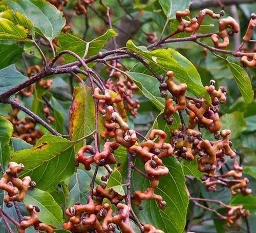 45、盐肤子,又名五倍子,成熟果上有盐霜,咸中带酸。