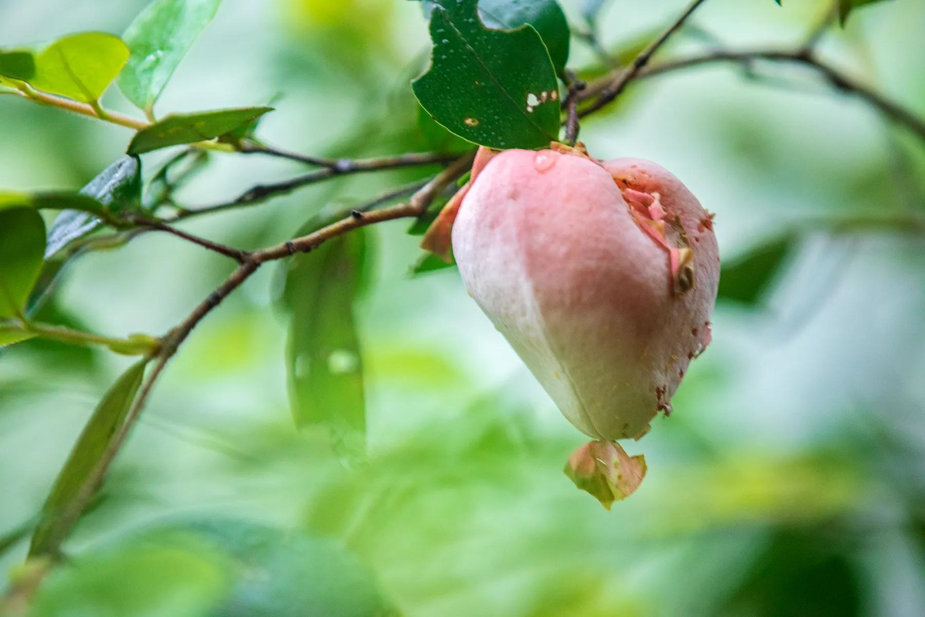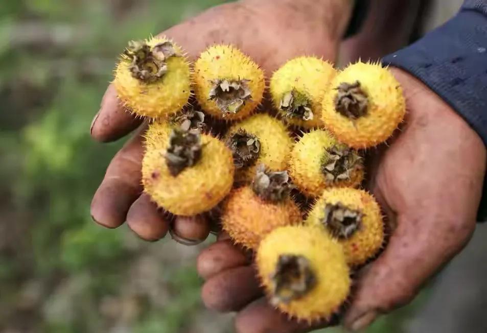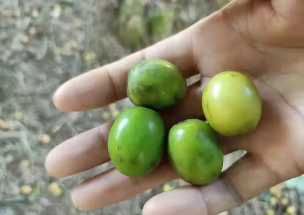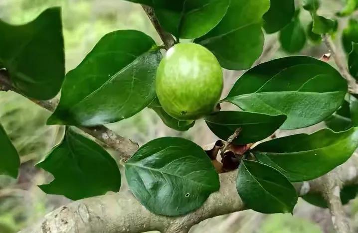 35、茶泡,茶树上的茶花变异后长成的果,味道清甜,可生吃,也可用来做菜。