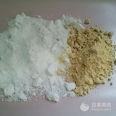 7、糖粉加熟黄豆粉搅拌均匀。没有以上材料直接用颗粒的白糖也可以做沾料。