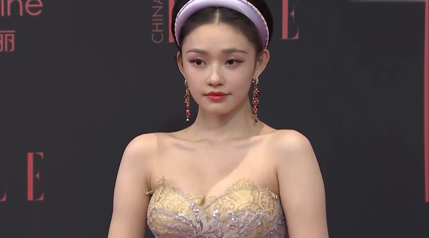 林允在出席红毯的时候,身穿一袭梦幻紫色的抹胸裙,但是好像是礼服有一点小,镜头给到特写的时候,整个人好像提着一口气,不难看出她的身材也很好。