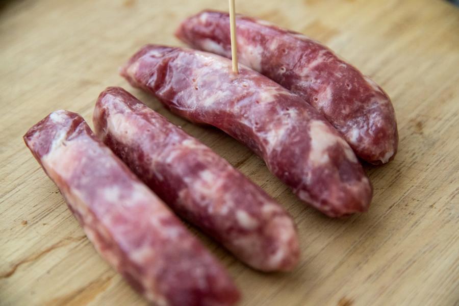 用牙签先将香肠表面戳洞,这样香肠在下锅煎的时候,不会因为热涨冷缩的关系,使得内外压力不均而让肉馅跑出来,香肠就可以维持完美的样子。