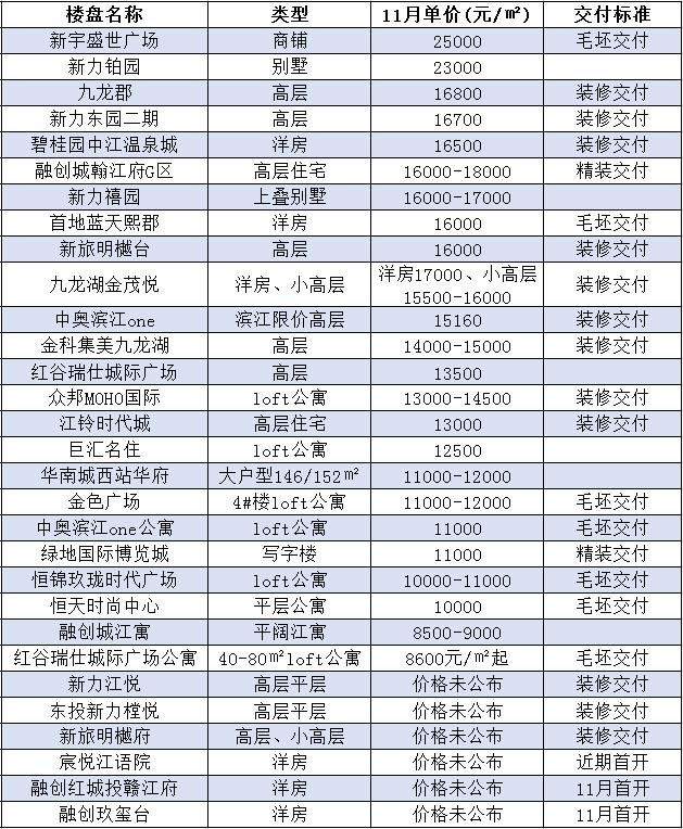 8500-10000元/㎡:红谷瑞仕城际广场公寓、融创城江寓。