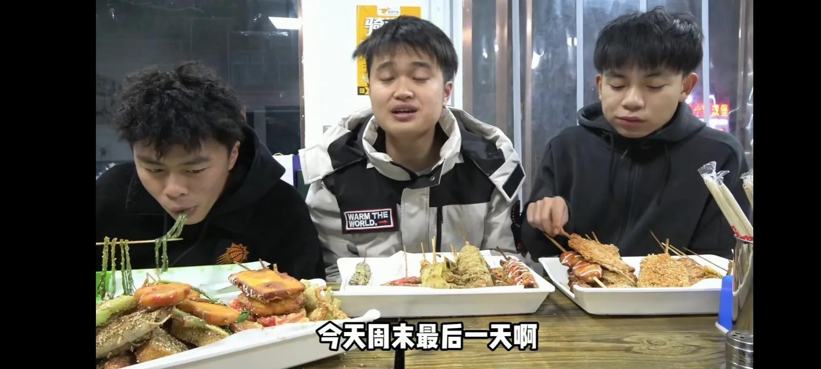 不仅如此,还吸引了各路网红-美食探店者。台湾来的!还有南京朋友开车几百公里,专门来花这15块钱吃个火锅的!还有一位穿花棉袄的大哥,边吃边直播的。目前看来这三小伙是带动了他们当地的美食行业发展!