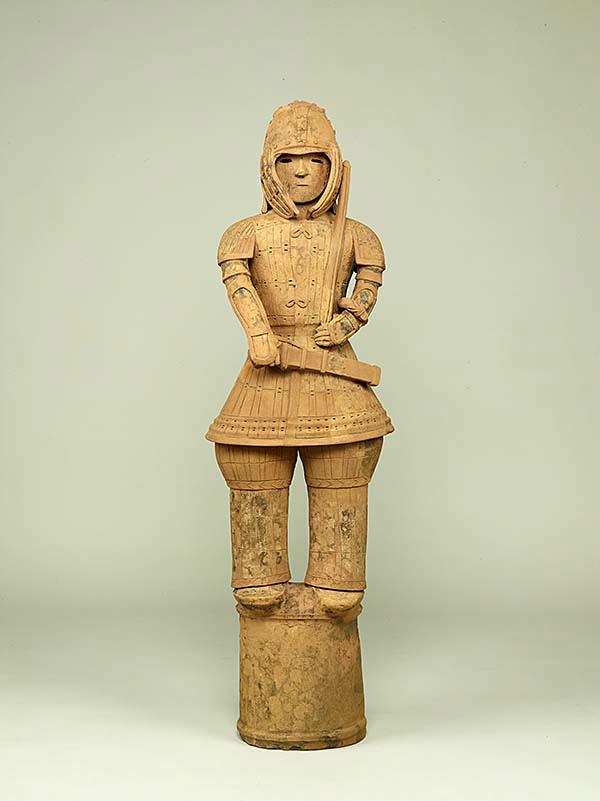 日本古代武装男子立像 ,古坟时代·6世纪。图2为日本京都的皇宫,图3为京都皇宫外的鸭川河}