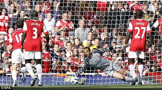 最近,切赫在阿森纳连续15次未能扑出点球成为一时的话题,他在英超扑点成功率仅有16.7%。对比之下,阿穆尼亚42.9%的扑点成功率显得尤其耀眼。而对于枪手来说,2007年在北伦敦德比拒绝罗比-基恩的那次扑救或是对他的一大记忆。