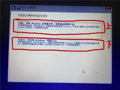 如果只对原系统升级更新,请选上面一项,如果是重装系统或者是安装双系统,请选下面一项。