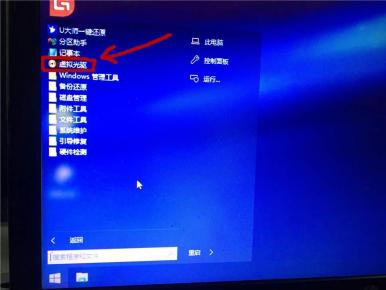 首先打开电脑,按快捷键选择U盘启动使电脑进入U盘的PE系统(各种品牌的电脑快捷键不一样,这里就不详细说了)。
