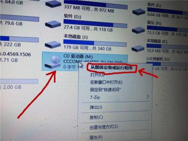 打开【我的电脑】找到光驱图标,右键选择【从媒体安装或运行程序】