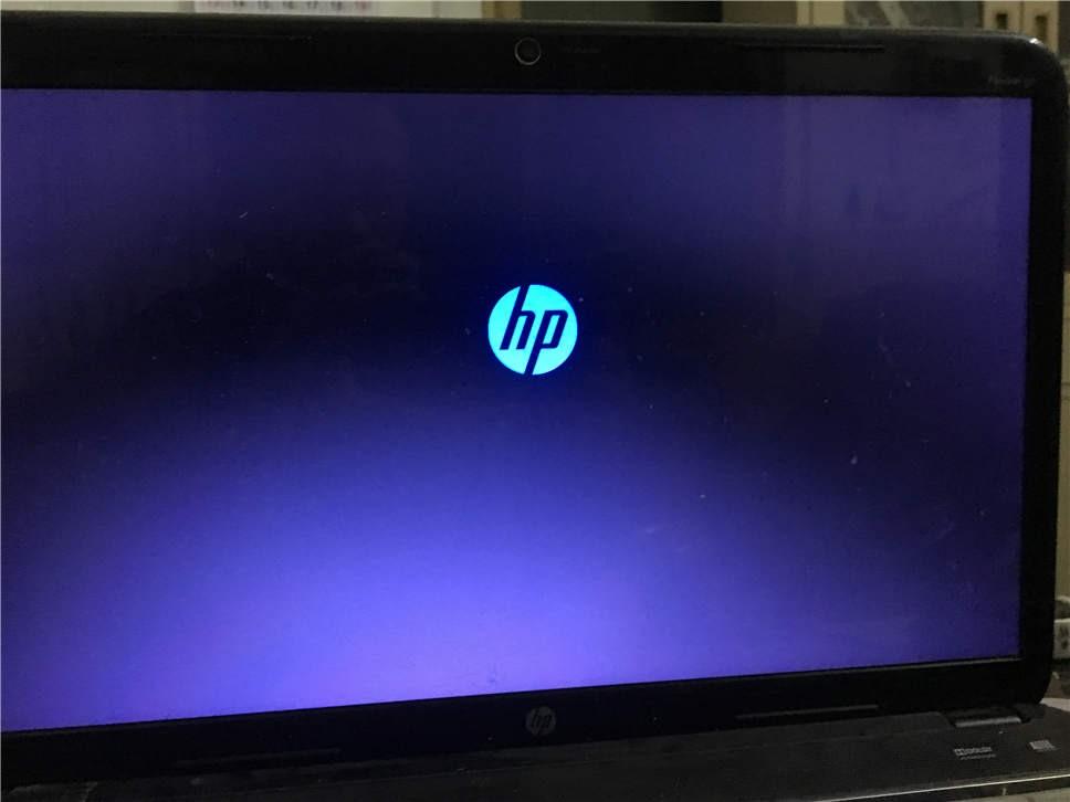 安装完成,电脑重启,我们看到开机引导画面是电脑出厂时的原画面,而不是PE加载的画面。