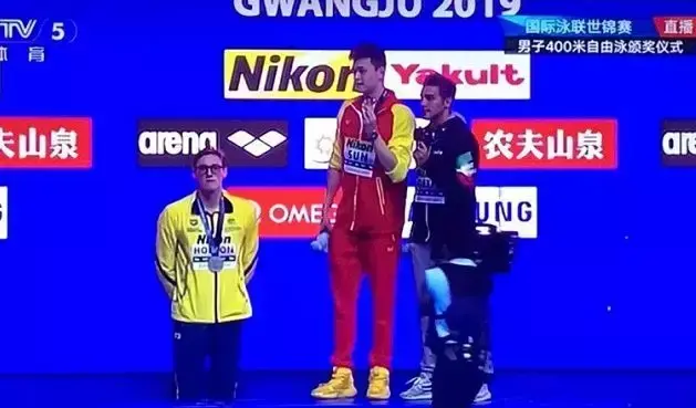 然而,意大利选手认为“这是自己努力得来的成绩,自己要站上领奖台”,最后孙杨和意大利选手共同站在领奖台上合影,而霍顿则面无表情地站在一旁。