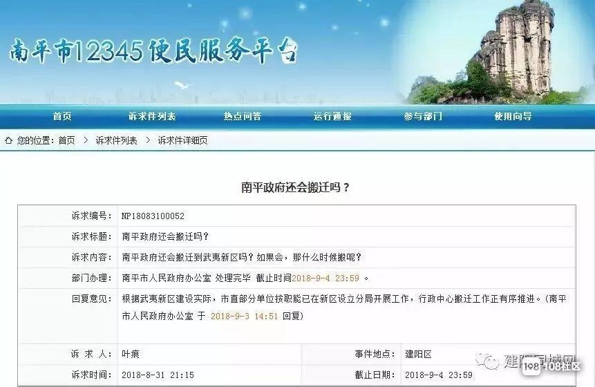 转眼到了2018年09年04日,面对网友们对“南平行政中心还会搬迁吗?”的疑惑,市政府给出了权威回复,根据武夷新区建设实际,市直部分单位按职能已在新区设立分局开展工作,行政中心搬迁工作正有序推进。帖子一出,社友们又纷纷表示:漫漫搬迁路,几多欢乐几多愁。