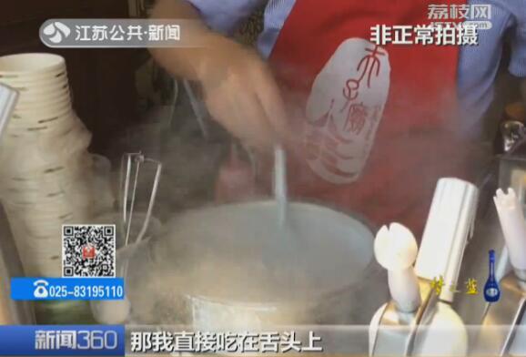 今天上午,记者在南京夫子庙看到至少有三家店铺在销售冒 烟冰淇淋,“-196℃的美味,-196℃液氮现场制作”,“网红冰淇淋,吃完会冒烟”,宣传标语大多醒目而诱人。记者留意到,店员往锅中倒入液氮,液氮便沸腾起来,加入奶油球,浸泡一分钟左右,即可捞出食用。