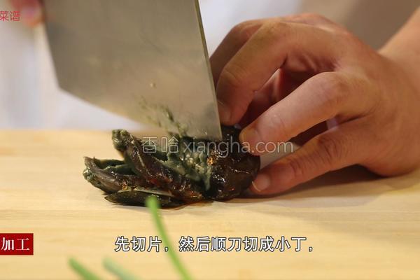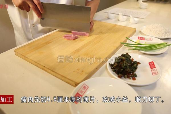 2.瘦肉先切0.5厘米厚的薄皮,改成小丝,顺刀切丁。