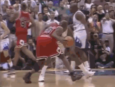 至于到底有没有推人,“敌我双方”各执一词难有定论,所以我直接放上动图,各位来看一看到底乔丹推人了没有?