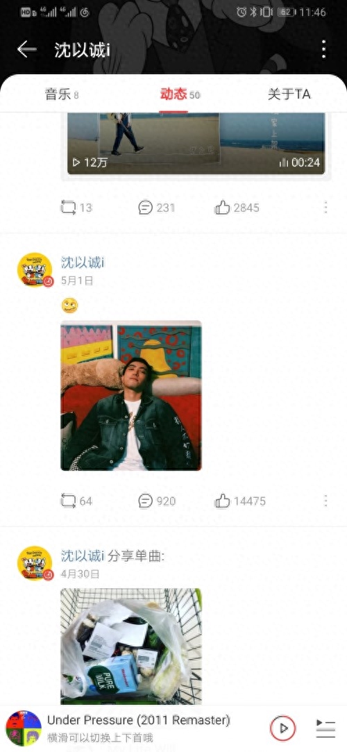 唯一能了解他的信息渠道是网易云音乐,在云村他拥有132万粉丝,多为90后、00后人群,大多数歌曲的评论都突破了“999+”,时不时发一些个人动态,热度不输头部音乐人。不玩抖音,但是带“沈以诚”标记的短视频播放量超过150万。