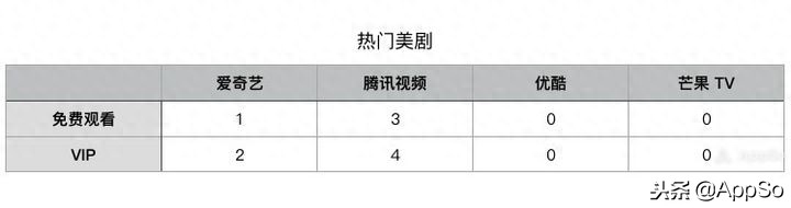 不过从数量上看,国内的美剧平台的确是腾讯视频一家独大,爱奇艺的两部 VIP 独播剧在热度上显然不够,优酷、芒果 TV 本轮全部阵亡。